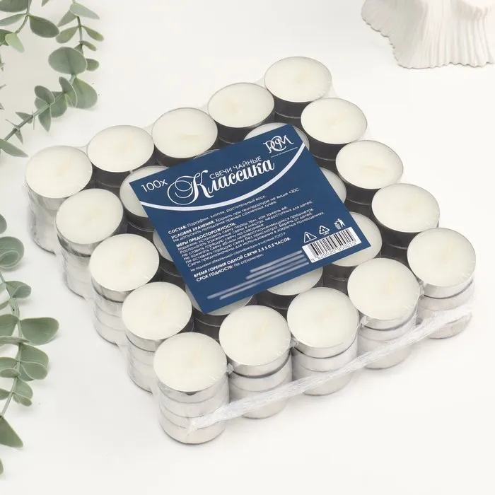 Набор чайных свечей, 100 штук, белый, "Дарим красиво"