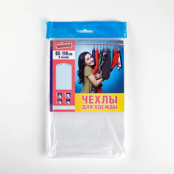 Набор чехлов для одежды, 65×110 см, 6 шт, прозрачный — Характеристики