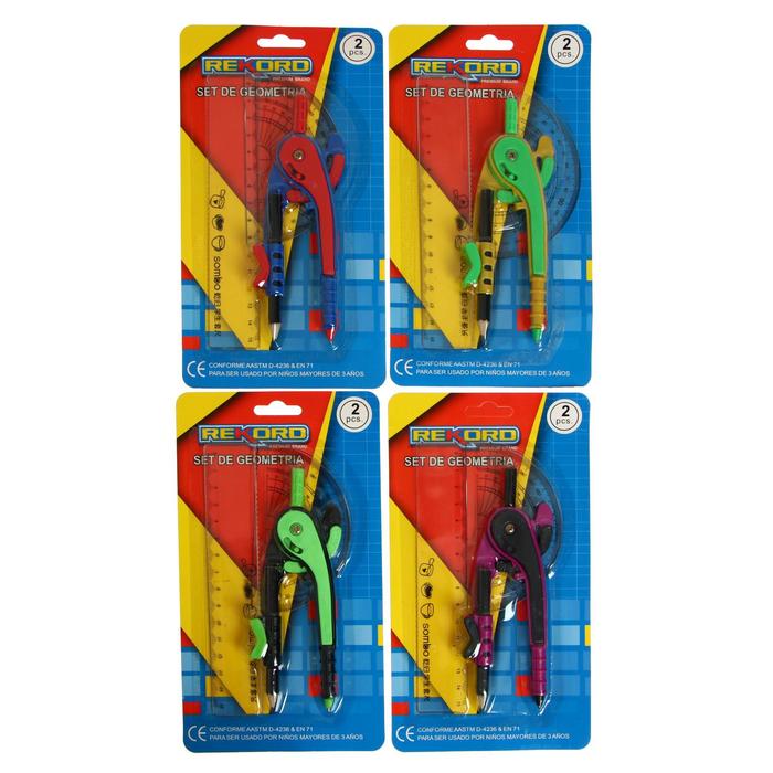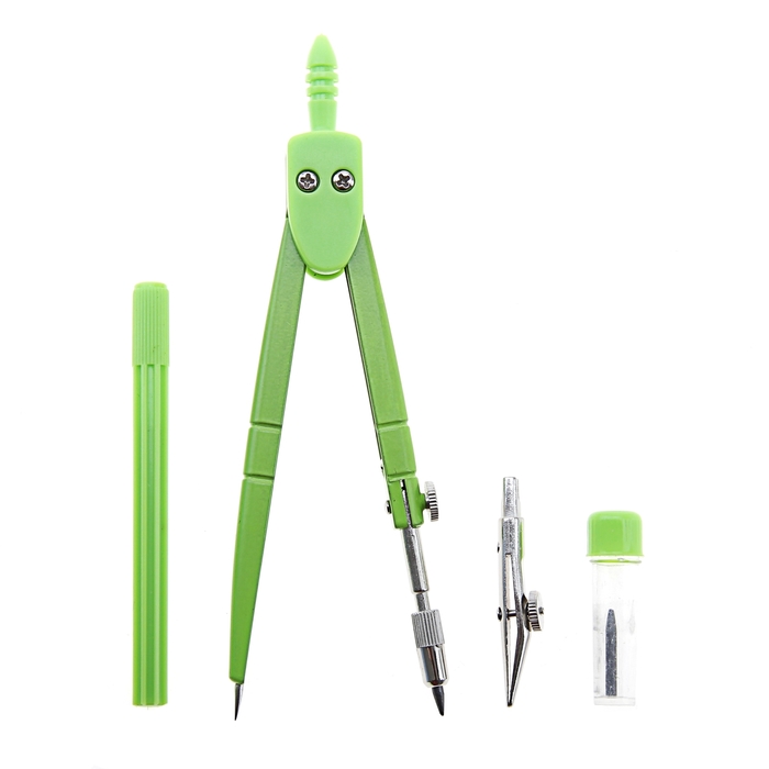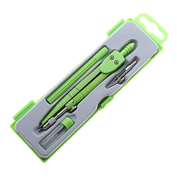 Состав готовальни: 4 предмета (циркуль, грифель, ручка-удлинитель, рейсфедер) в пластиковом пенале.