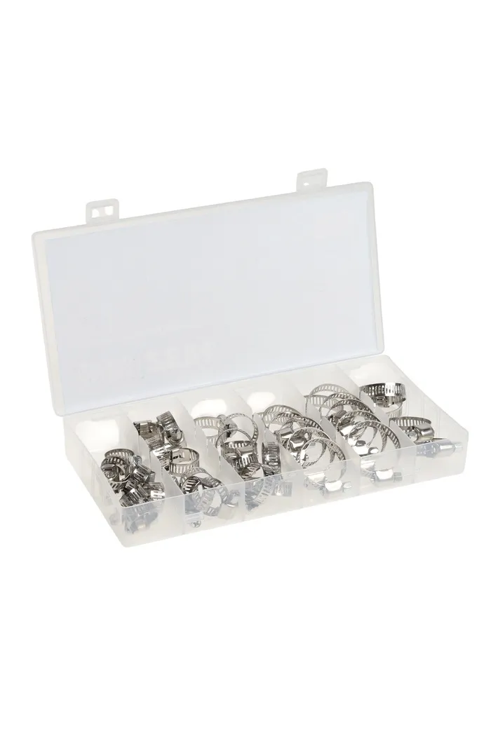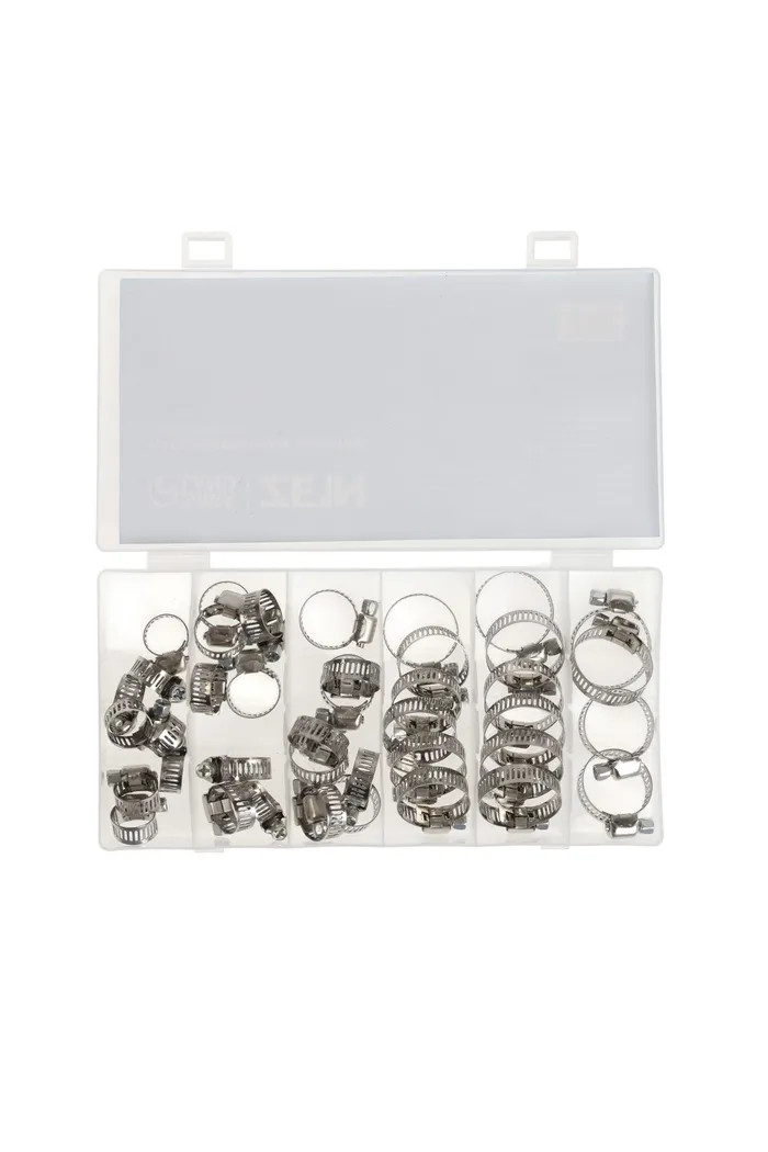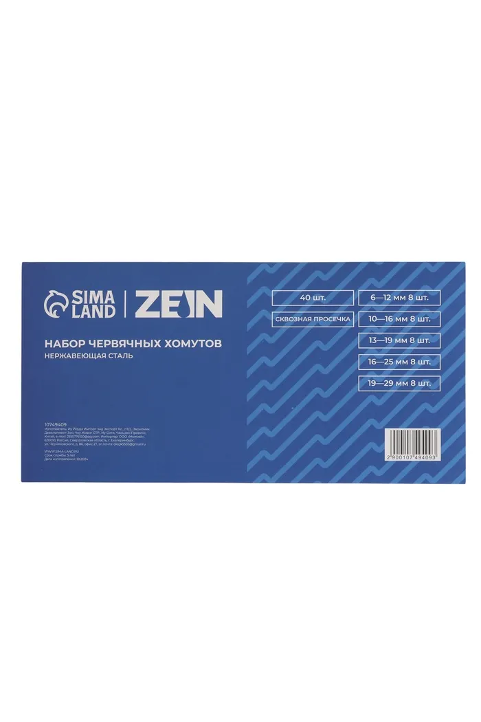 Набор червячных хомутов ZEIN engr, сквозная просечка, от 6 до 29 мм, нерж. сталь, 40 шт.