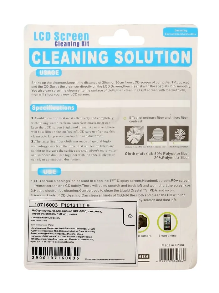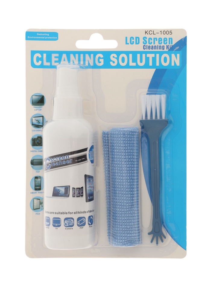 Набор чистящий для экранов KCL-1005, салфетка, спрей 100 мл, щётка — Характеристики