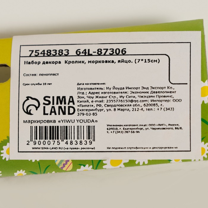 Набор декора на Пасху, Кролик, морковка, яйцо (7×15 см) — Характеристики