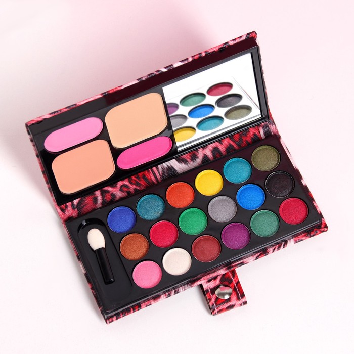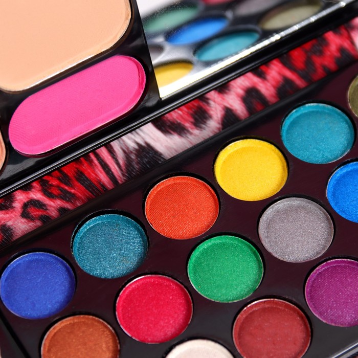 Набор декоративной косметики: тени 18 цветов, румяна 2 цвета, пудра, бронзер, зеркало, микс — Характеристики