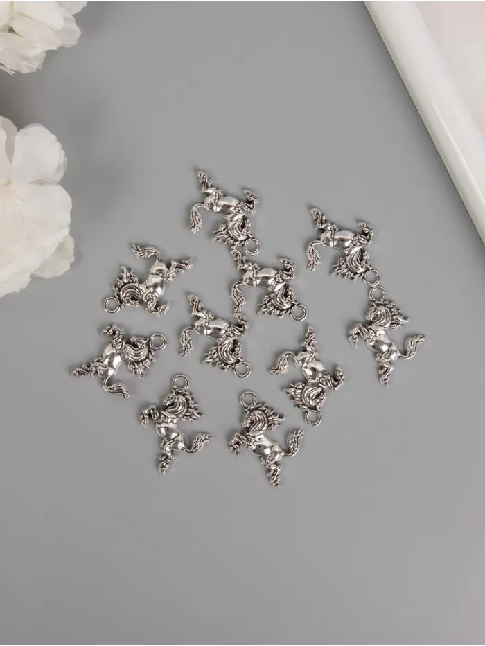 Этот набор декоративных элементов с изображением вздыбленного коня придаст вашим творческим проектам благородный блеск и динамику. Серебристые металлические пластины с чёткими деталями подойдут для украшения открыток, скрапбукинга или декора интерьера — их универсальность ограничена только вашей фантазией.