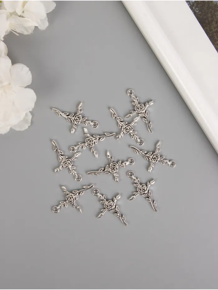 Эти изящные металлические элементы с символикой розы и креста добавят глубины и смысла вашим творческим работам. Серебристый отлив и тонкая проработка деталей превращают каждый элемент в миниатюрное произведение искусства, готовое украсить открытки, альбомы или интерьерные композиции.
