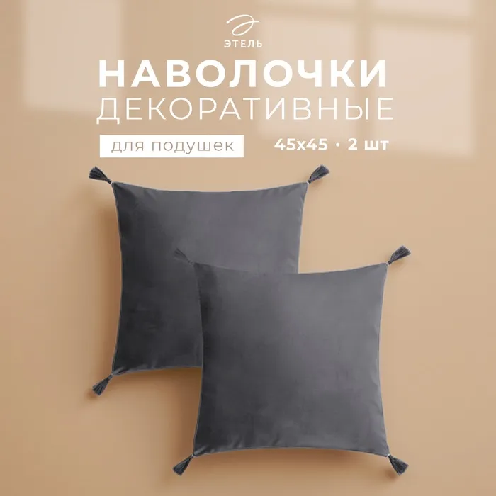 Набор декоративных наволочек Этель с кисточками, цвет серый, 45х45 см - 2 шт, полиэстер, велюр — Характеристики