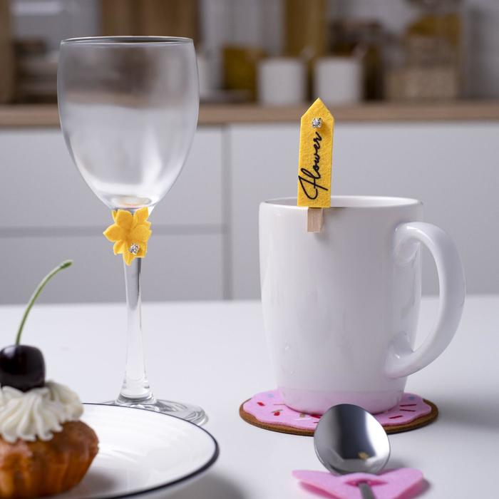 Набор подставок для бокала «Снежинка», 4 штуки, красный 8.5 см, 100; п/э, фетр