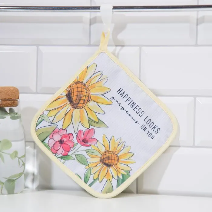 Прихватка Доляна "Подсолнухи" 17х17см габардин, 35% хлопок, 65% п/э, ватин 250г/м2