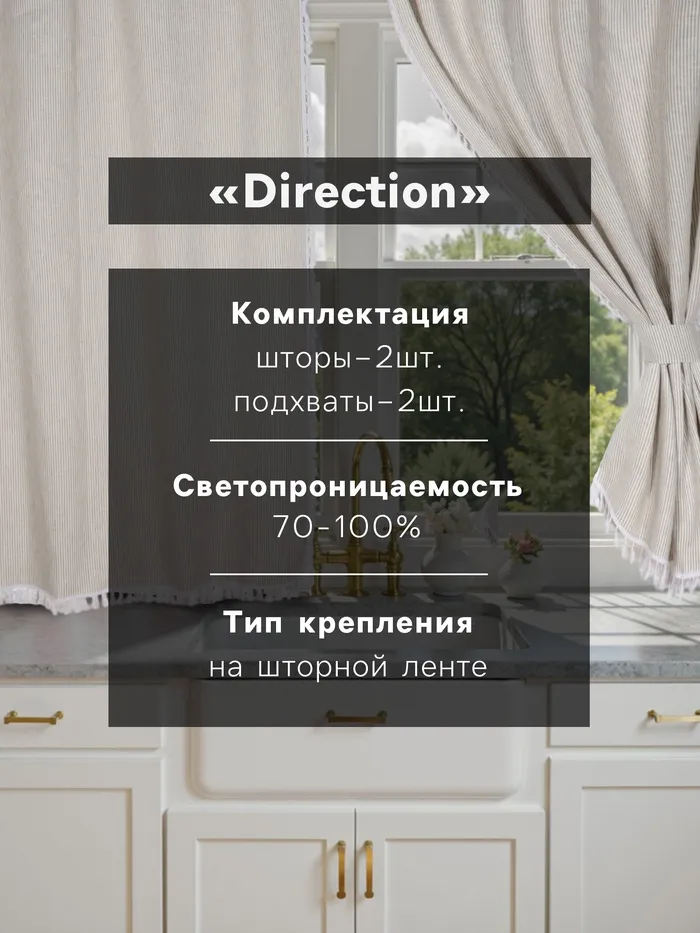 Комплект штор для кухни SL HOME Direction 140×180 см-2 шт., подхваты 2 шт., лён 100%