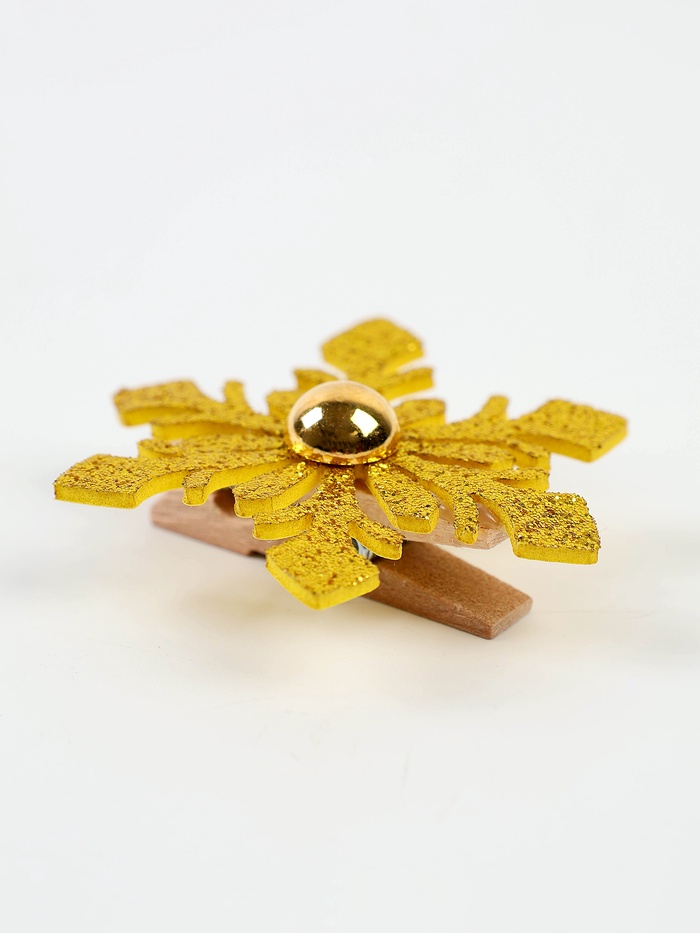 Набор декоративных прищепок - украшений «Новогодние снежинки» цвет золотой, набор 6 шт.