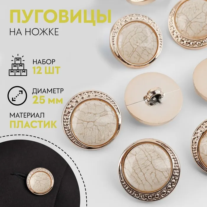 Этот набор декоративных пуговиц из пластика предназначен для украшения верхней одежды и аксессуаров. Каждая пуговица диаметром 25 мм, что делает их универсальным элементом для создания стильных и элегантных образов. В комплект входит 12 пуговиц на ножке, которые легко пришиваются или крепятся к ткани.