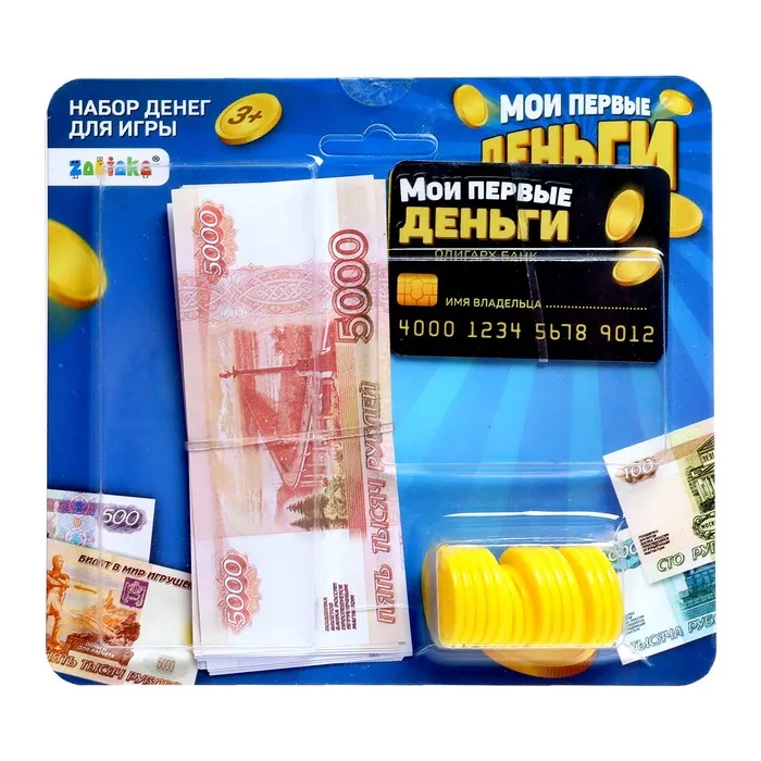 Набор предназначен для настоящих юных миллионеров! Ваш малыш научится правильно считать деньги, пользоваться пластиковой картой и почувствует себя совсем взрослым.