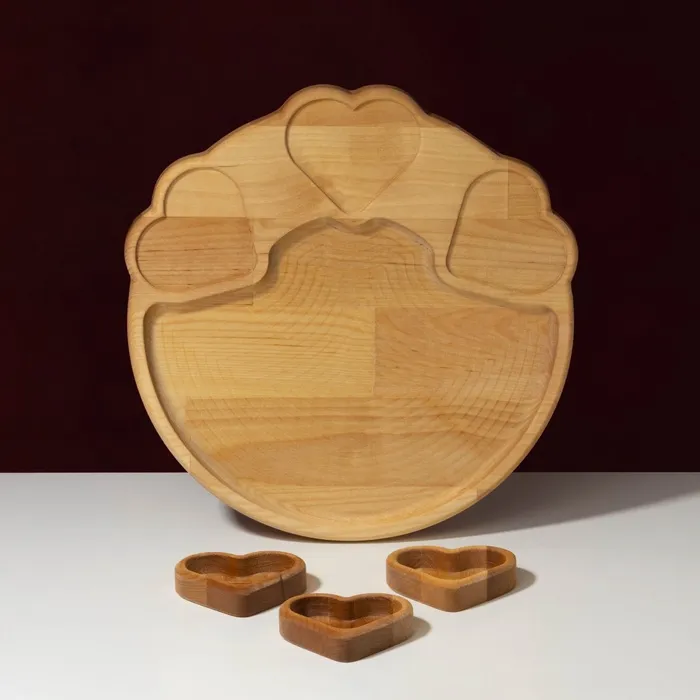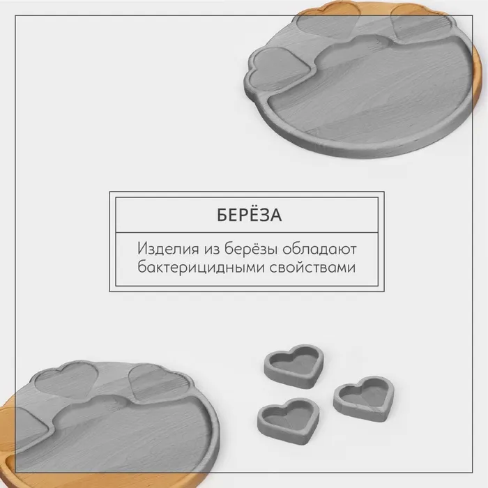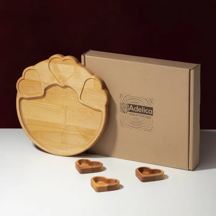 Набор деревянной посуды Adelica, менажница с 3 соусниками, 30×28×1,8 см, в подарочной коробке, берёза — Характеристики