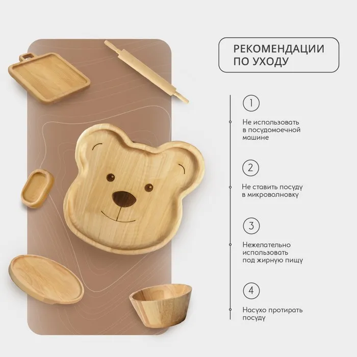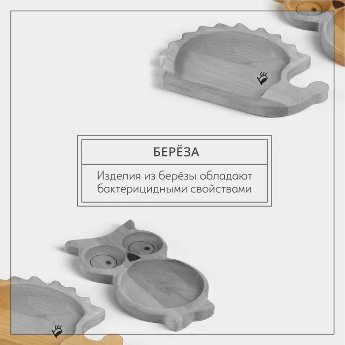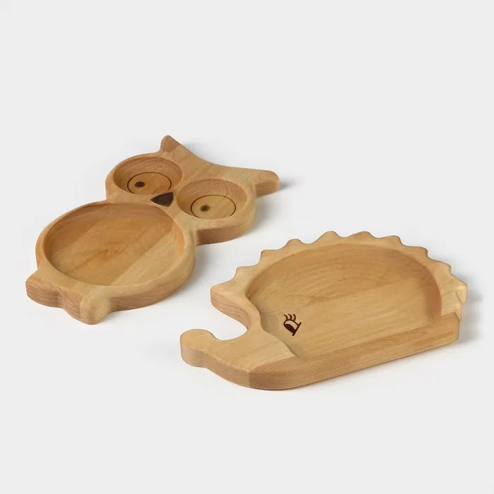 Набор деревянной посуды Adelica «Советское детство», менажница, ежик 21×14×1,8 см, сова 21,5×13×1,8 см, в подарочной коробке — Характеристики