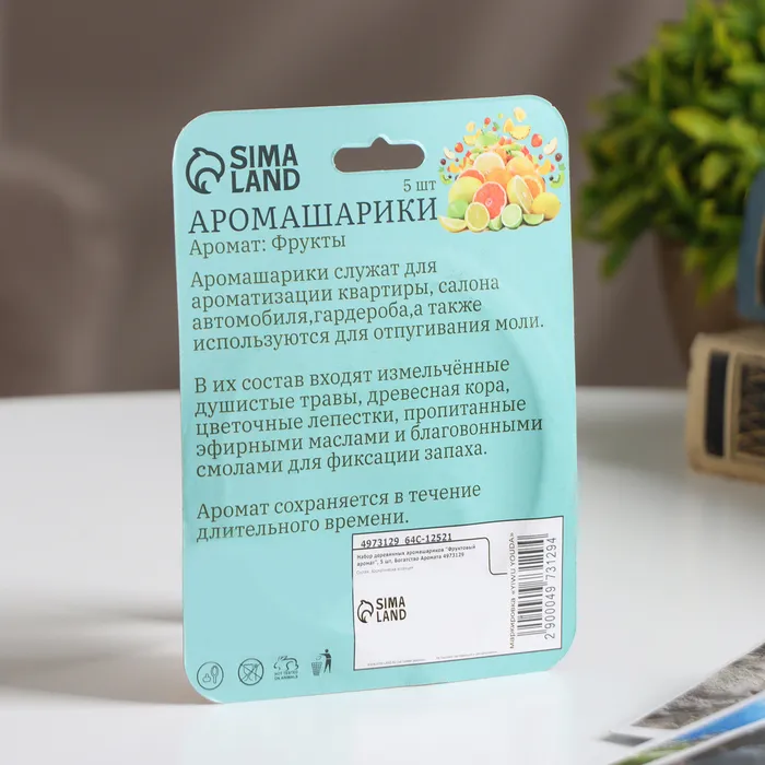 Набор деревянных аромашариков "Фруктовый аромат", 5 шт, Богатство Аромата — Характеристики