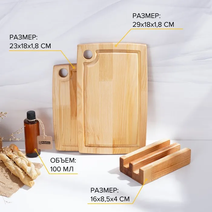 Набор деревянных разделочных досок 2 шт Adelica: подставка под доски, берёза, масло в подарок 100 мл, в подарочной коробке — Характеристики