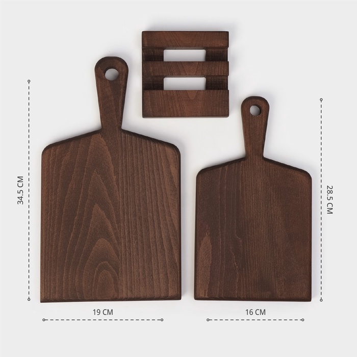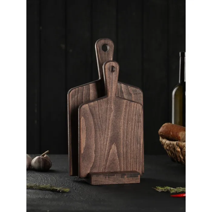 Набор деревянных разделочных досок на подставке Wild Kitchen, 34.5×19×2 см и 28.5×16 см, бук темный — Характеристики