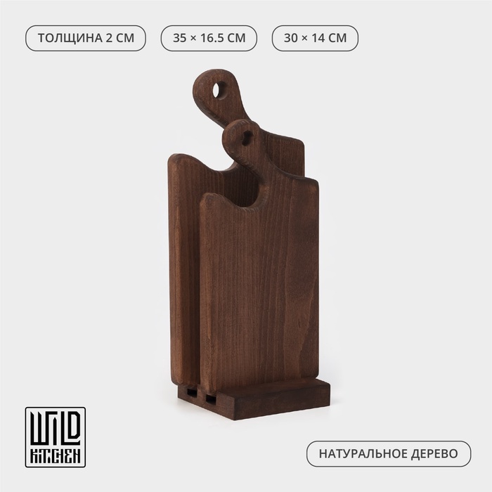 Набор деревянных разделочных досок на подставке Wild Kitchen, 35×16.5×2 см и 30×14×2 см, бук темный — Характеристики