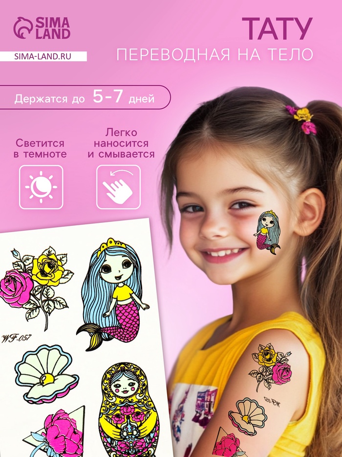 Набор Детские татуировки, светятся в темноте, 2 листа — Характеристики