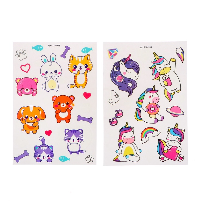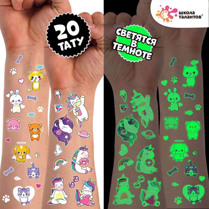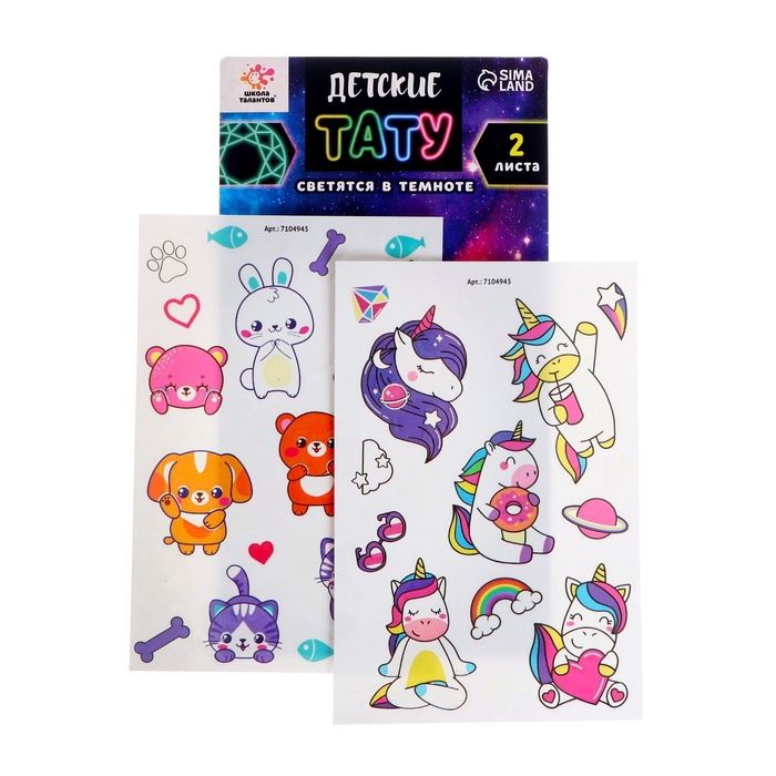 Набор Детские татуировки, светятся в темноте, 2 листа — Характеристики