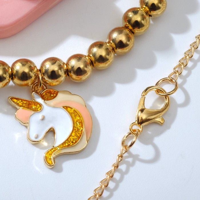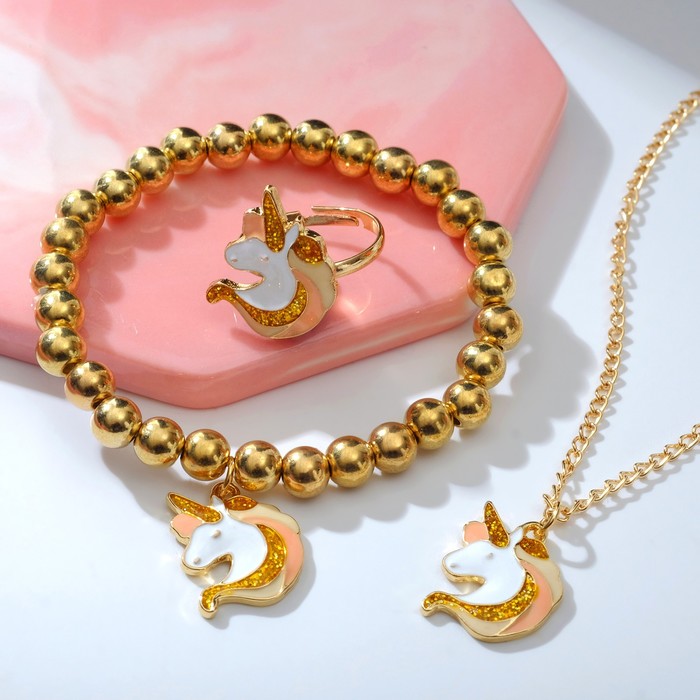 Набор детский 3 предмета: кулон, браслет, кольцо «Выбражулька» единороги, цветной в золоте