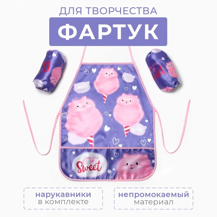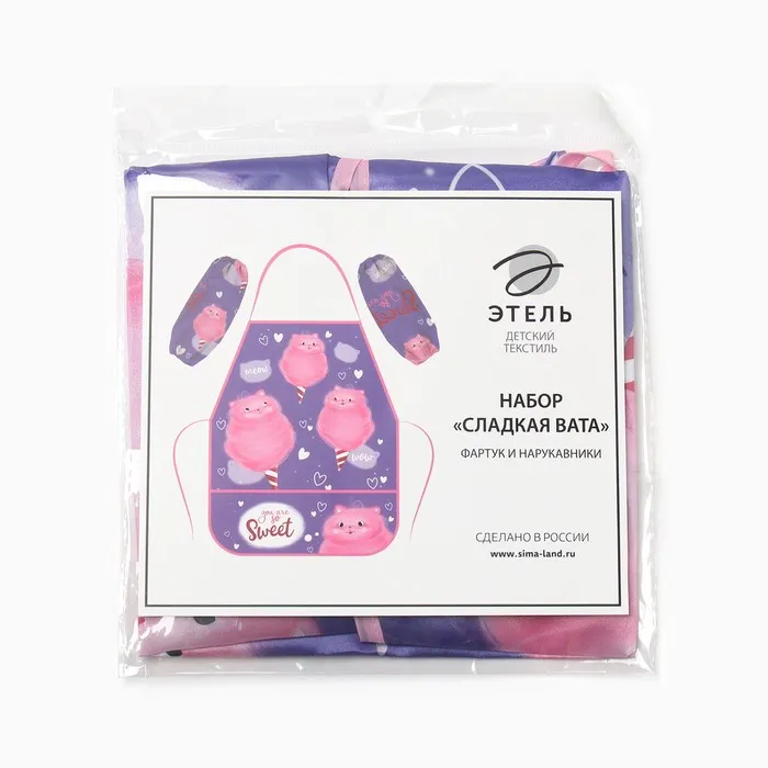 Набор детский для творчества Этель "Сладкая вата" фартук 49 х 39 см и нарукавники — Характеристики
