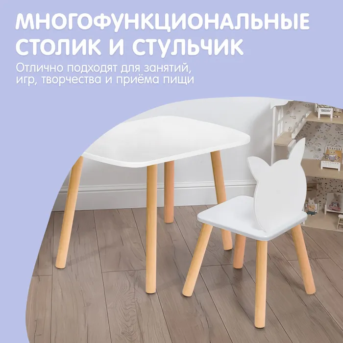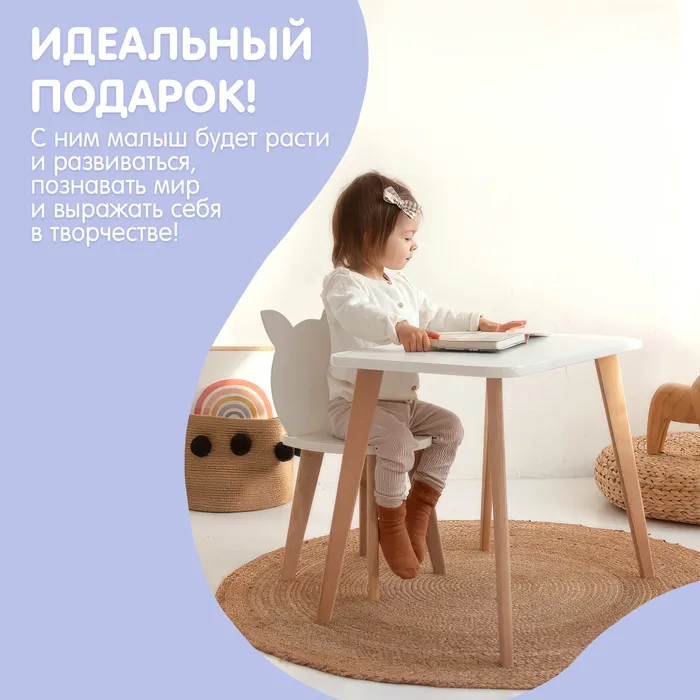 Ребёнок будет охотней заниматься творчеством, учиться писать, считать и познавать мир, если его окружить удобной мебелью. Этот комплект мебели впишется в любой интерьер и станет настоящим украшением детской комнаты.