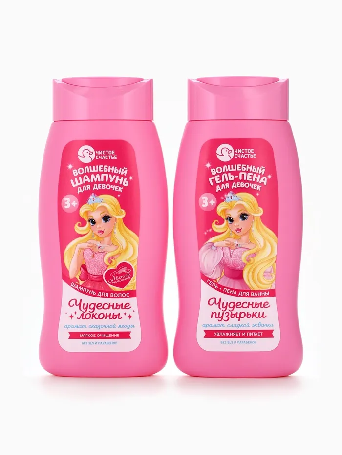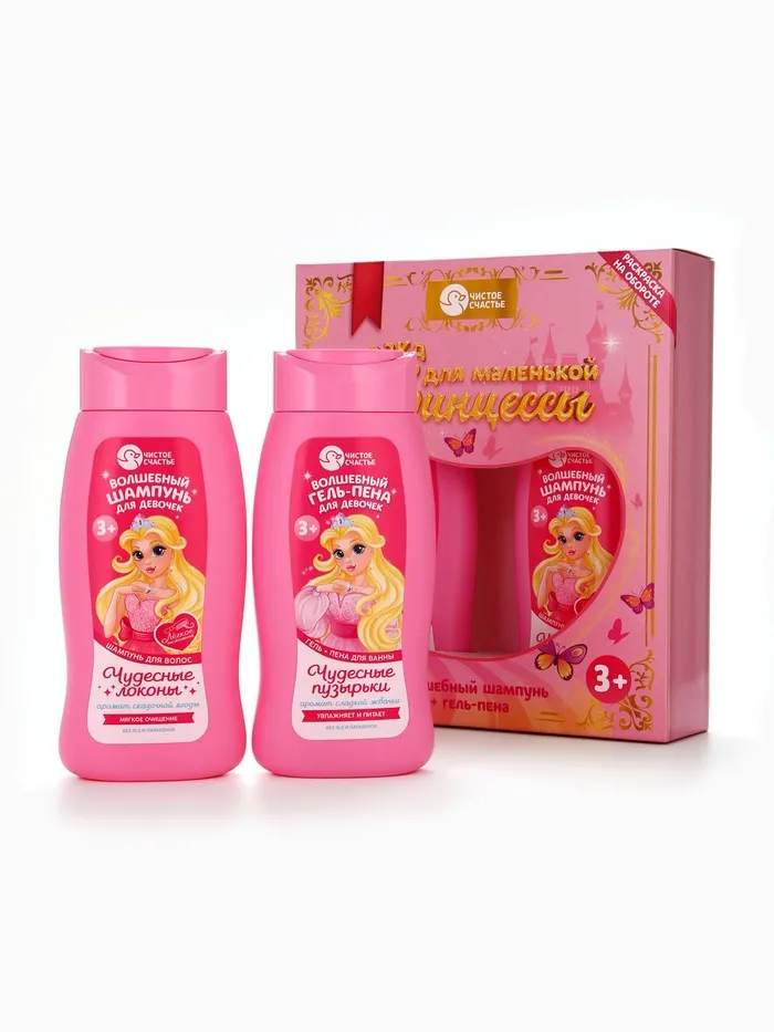 Набор детский «Сказка для маленькой принцессы», гель-пена 250 мл, шампунь 250 мл, Чистое счастье