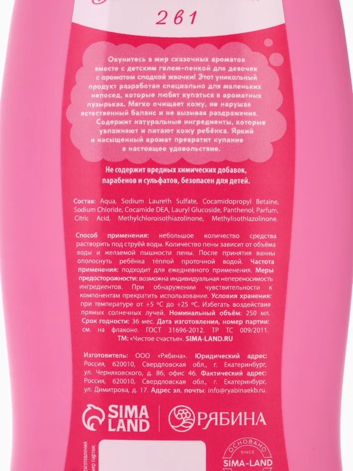 Набор детский «Сказка для маленькой принцессы», гель-пена 250 мл, шампунь 250 мл, Чистое счастье — Характеристики