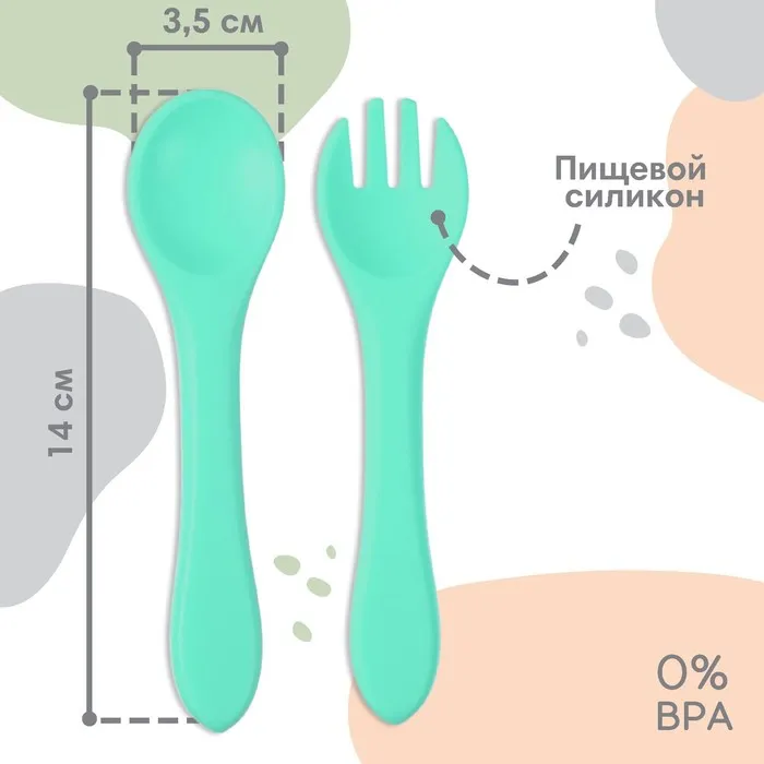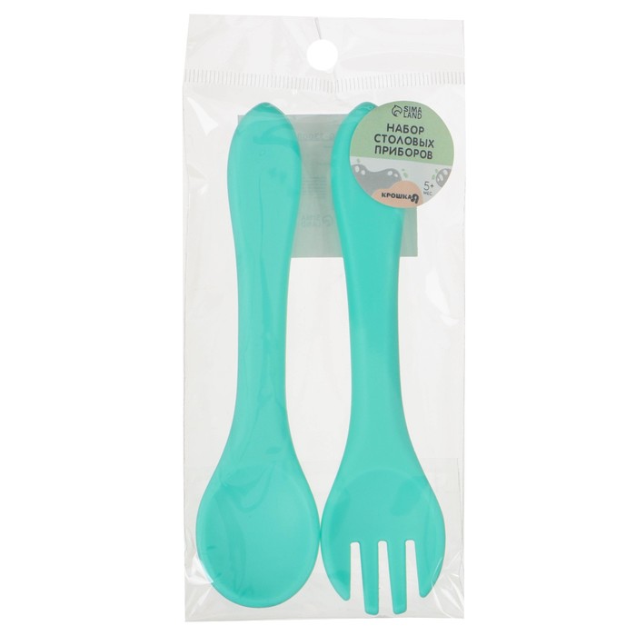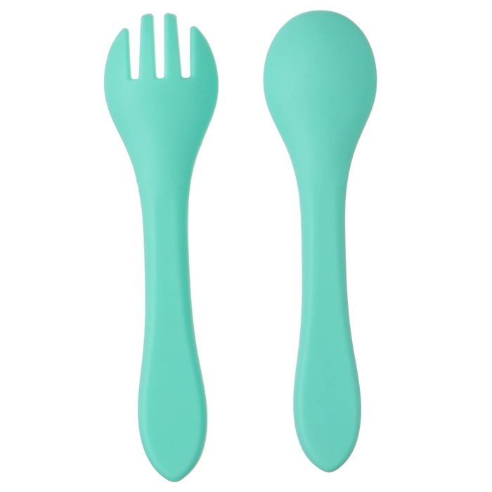 Набор детский столовых приборов Крошка Я, вилка и ложка, силикон, бирюзовый — Характеристики