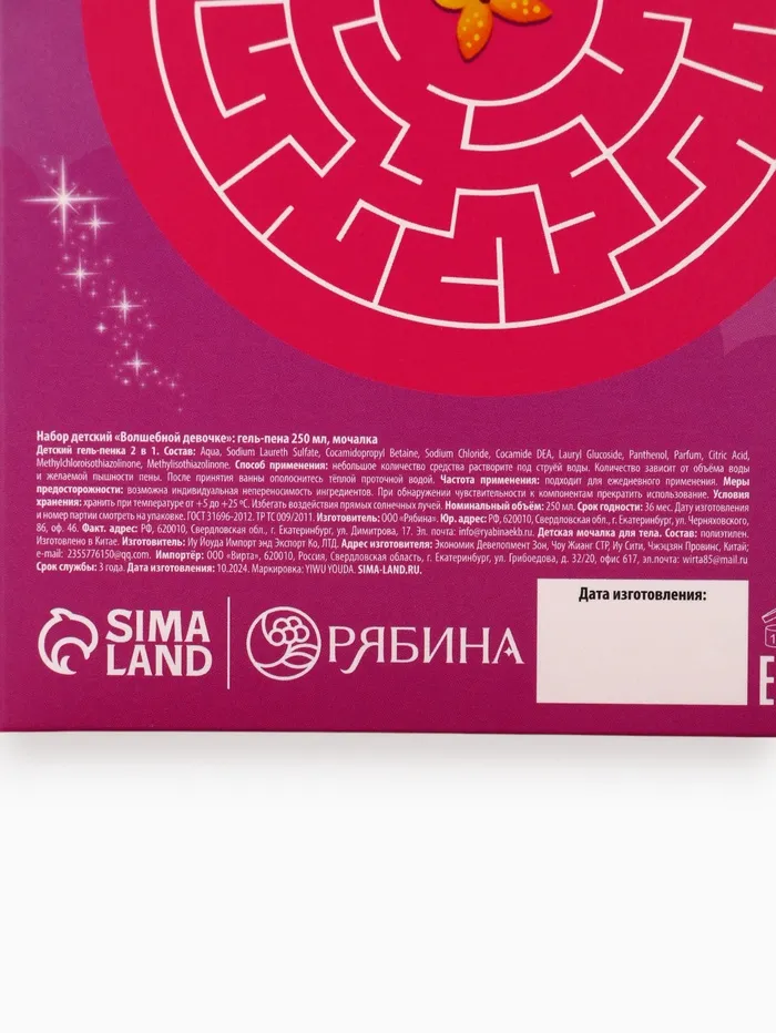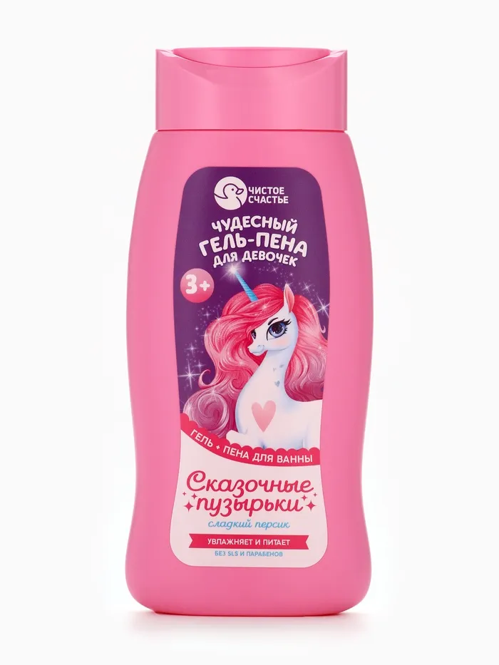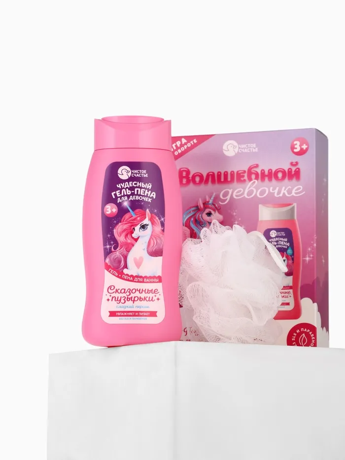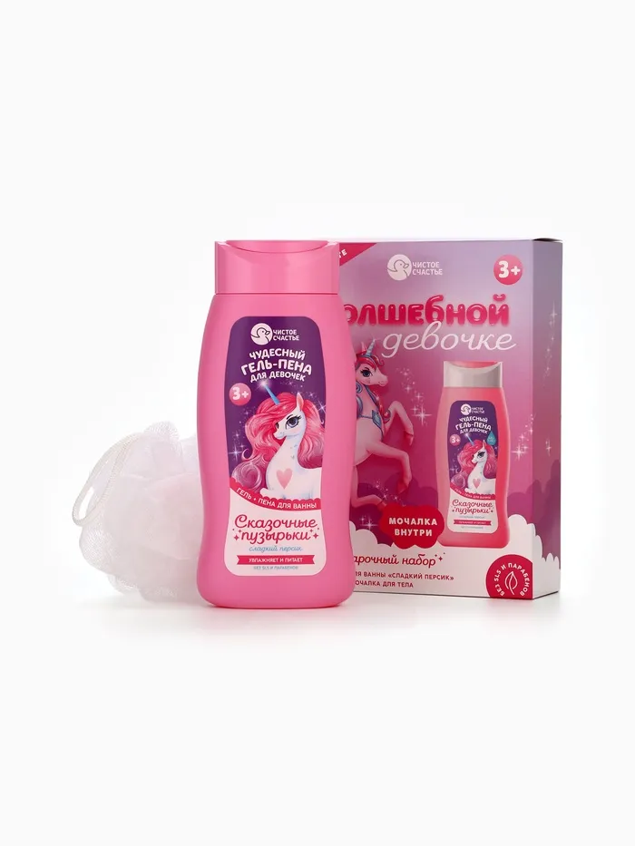 Набор детский «Волшебной девочке», гель-пена 250 мл, мочалка, Чистое счастье — Характеристики