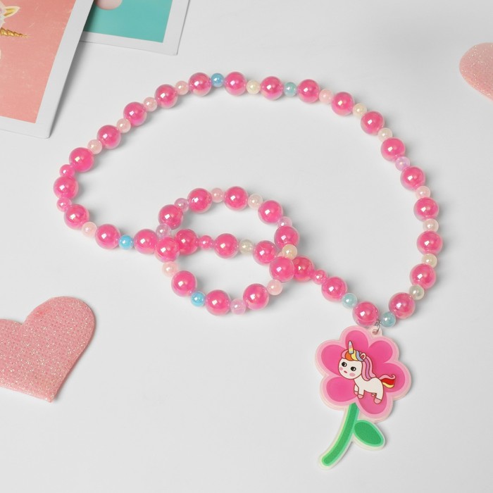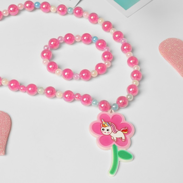 Набор детский «Выбражулька» 2 предмета: браслет d=5 см. кулон, цветок волшебный, розовый — Характеристики