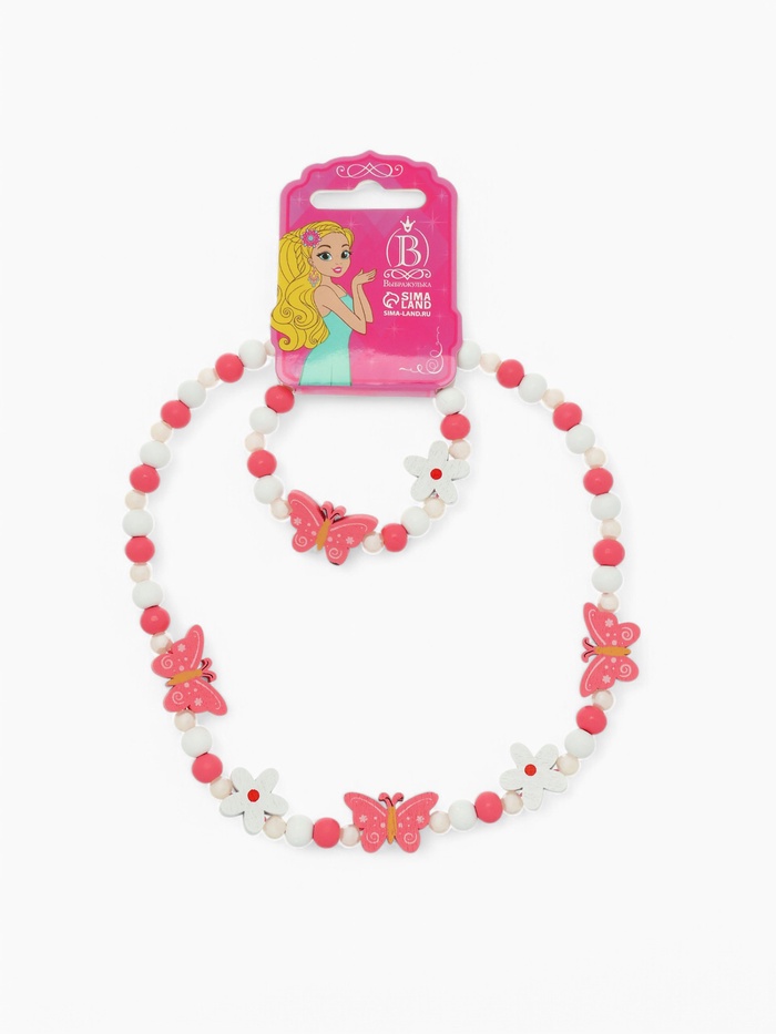 Набор детский «Выбражулька» 2 предмета: бусы, браслет, бабочки и цветы, цветной — Характеристики