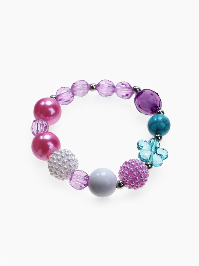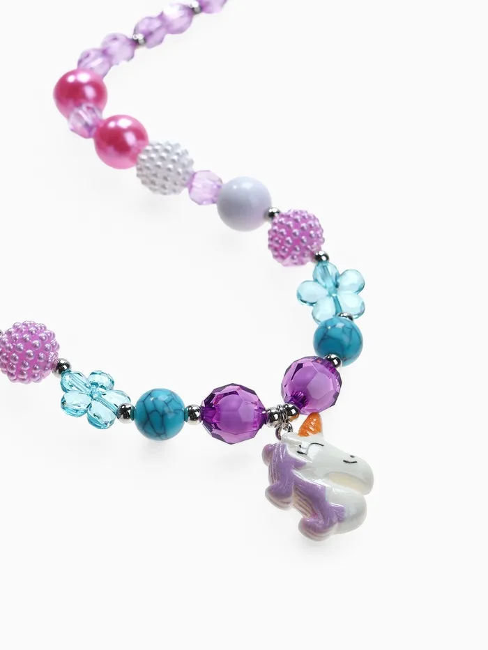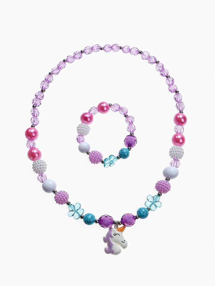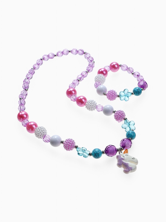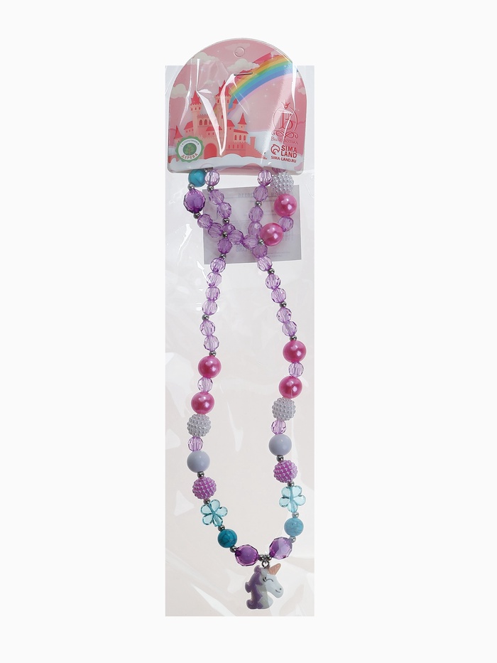 Набор детский «Выбражулька» 2 предмета: бусы, браслет d=5 см., единорог в цветах, фиолетовый — Характеристики