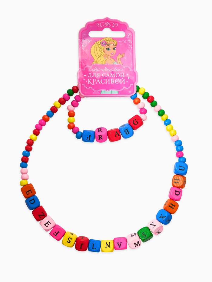 Набор детский «Выбражулька» 2 предмета: бусы, браслет d=6 см. алфавит, дерево, разноцветный — Характеристики