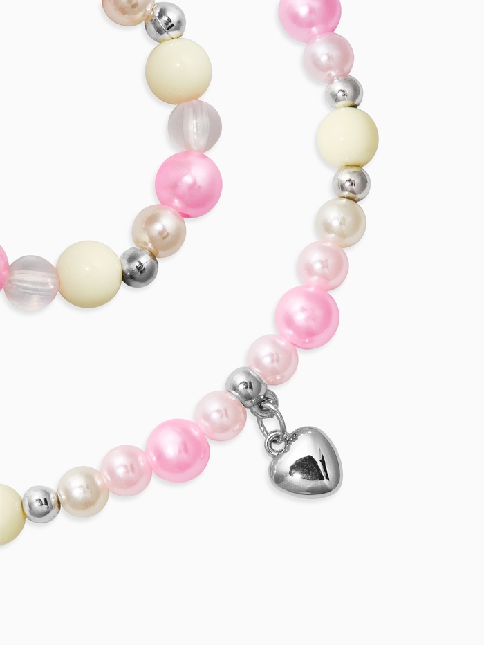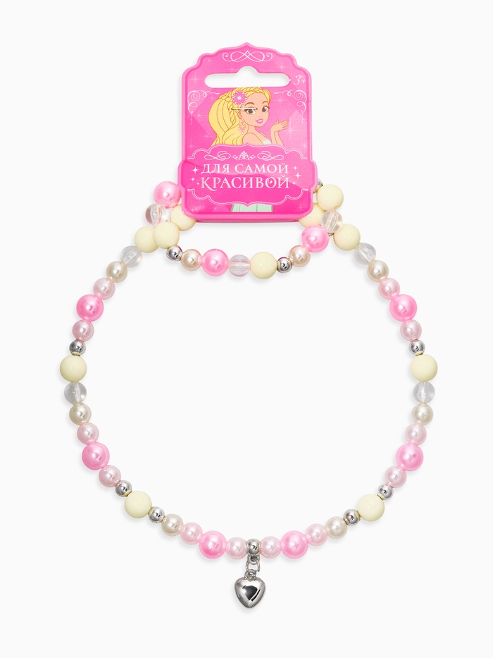 Набор детский «Выбражулька» 2 предмета: бусы, браслет d=6 см. сердце, розовый в серебре — Характеристики