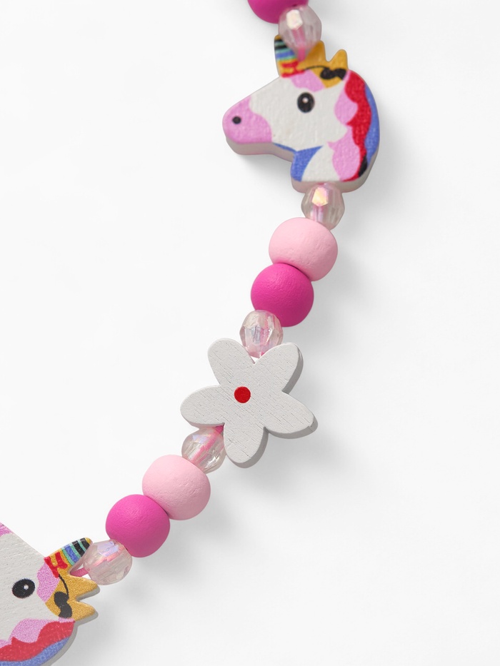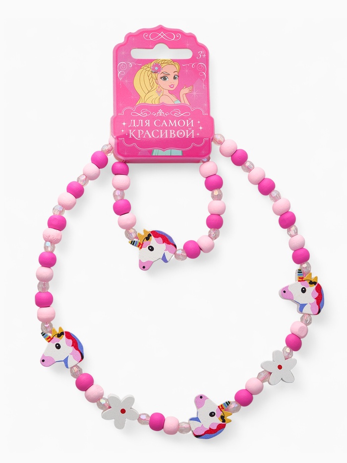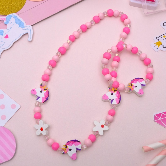 Погрузитесь в волшебный мир ярких фантазий с этим очаровательным набором для девочек, который превращает каждое украшение в сказочный аксессуар. В комплект входят бусы и браслет длиной 35 см, выполненные из безопасного пластика и дерева в нежно-розовом цвете, украшенные милым единорожком — символом доброты и магии. Такой набор станет отличным спутником для маленькой модницы на празднике, прогулке или в повседневных приключениях.