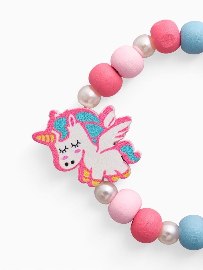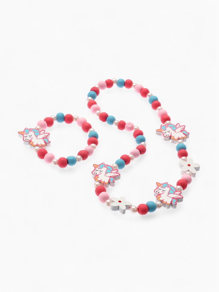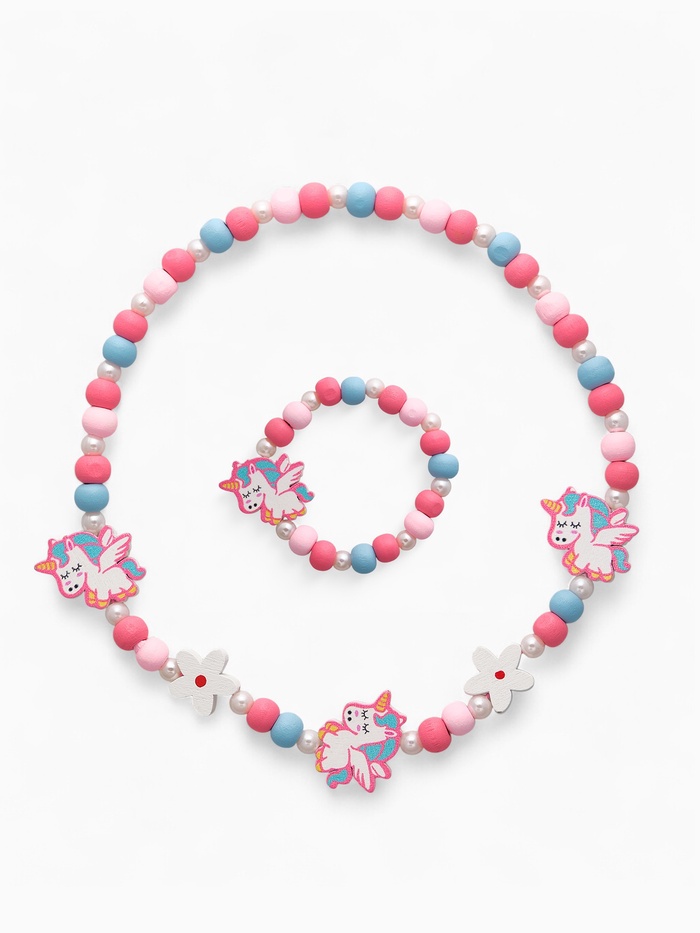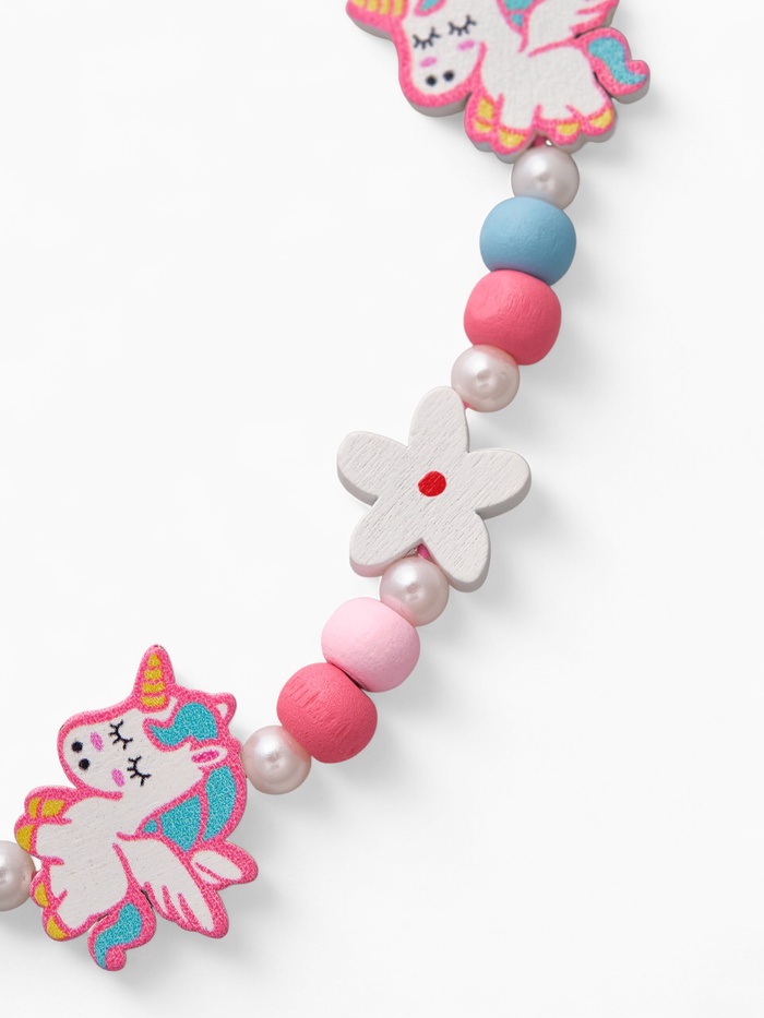 Погрузитесь в волшебный мир детских украшений с этим очаровательным набором, созданным специально для маленьких принцесс. В нем собраны милые бусы и браслет с изображением забавных единорогов, выполненные в нежных розовых оттенках и ярких цветах, которые обязательно привлекут внимание и вызовут улыбку.