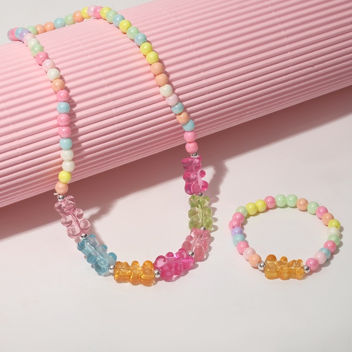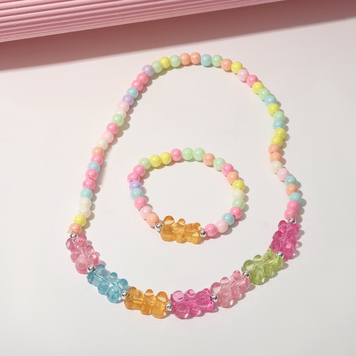 Набор детский «Выбражулька» 2 предмета: бусы, браслет, мармеладные мишки, d=5 см. цветной — Характеристики