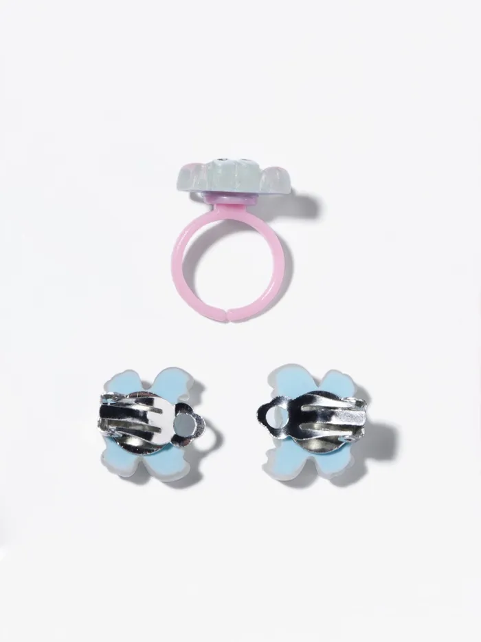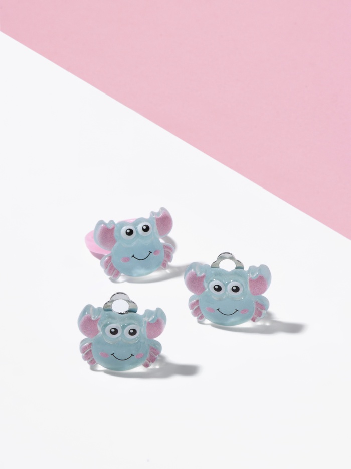 Подарите своей маленькой принцессе возможность сиять с этим очаровательным набором, в который входят клипсы и кольцо с забавным крабом! Голубо-розовые оттенки и милый дизайн создадут неповторимый стиль и добавят ярких акцентов в любой наряд.