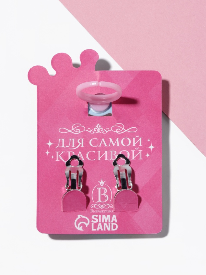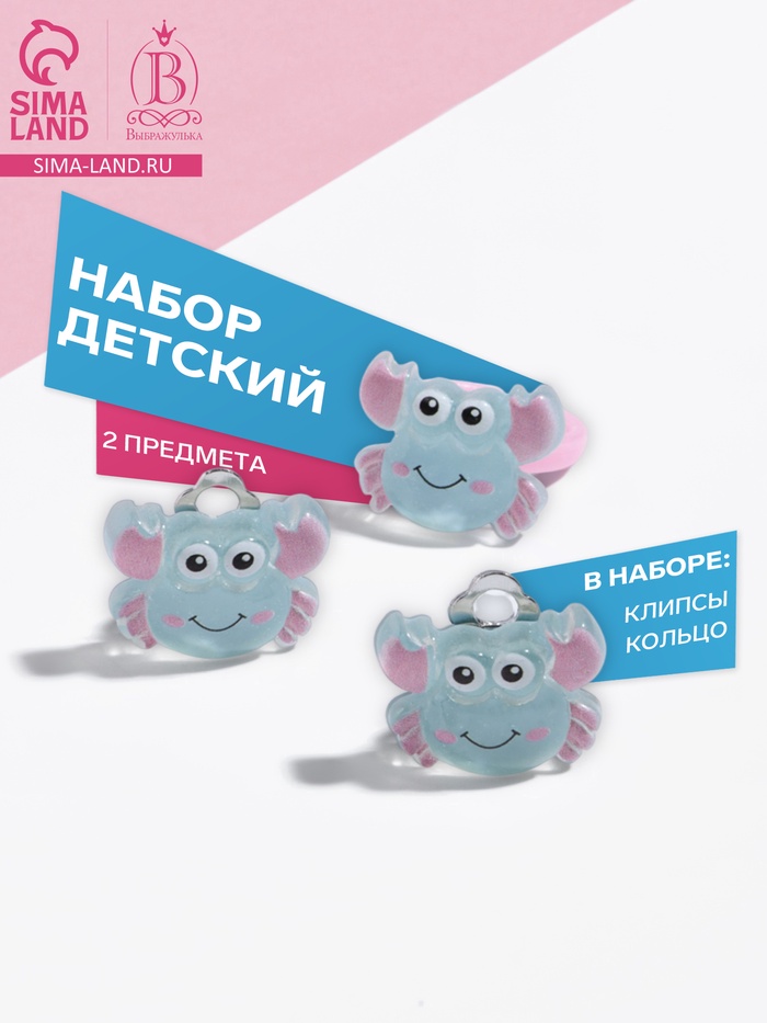 Набор детский «Выбражулька» 2 предмета: клипсы, кольцо, краб, голубо-розовый — Характеристики