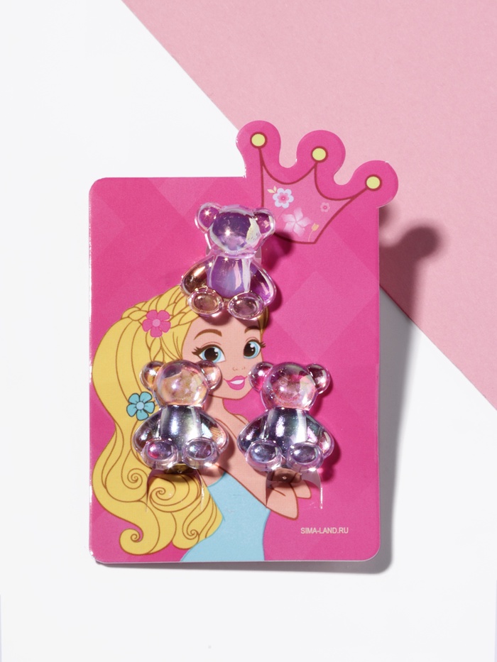 Набор детский «Выбражулька» 2 предмета: клипсы, кольцо, мишка, МИКС — Характеристики