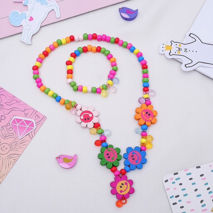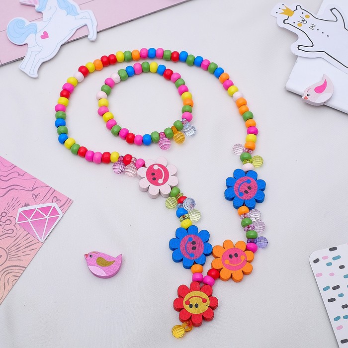 Набор детский «Выбражулька» 2 предмета: кулон, браслет d=5 см. цветы ромашки веселые — Характеристики