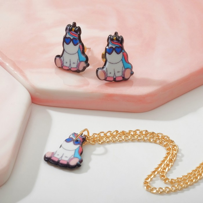 Набор детский «Выбражулька» 2 предмета: пусеты, кулон, единорог в очках, цветной