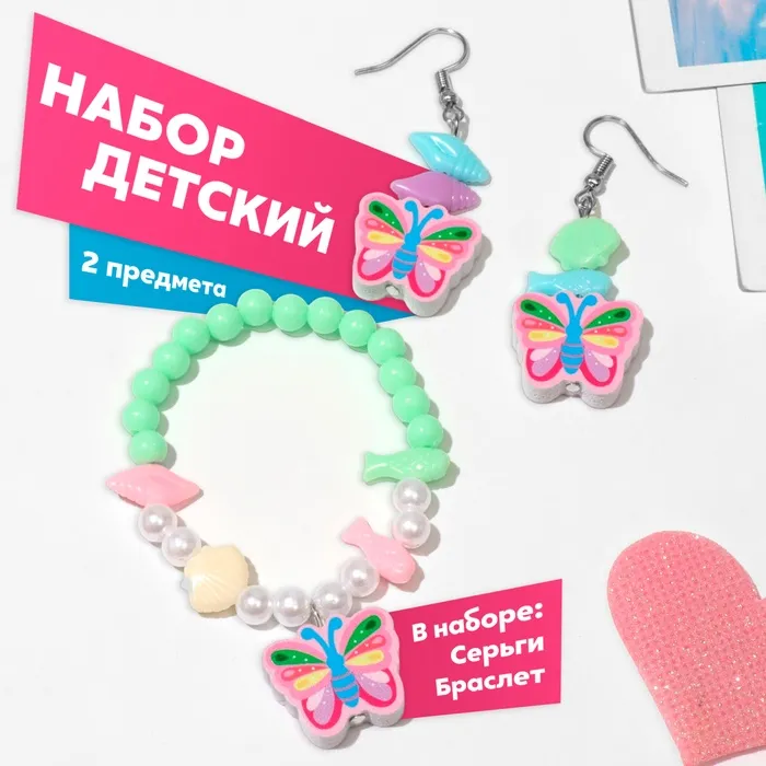 Набор детский «Выбражулька» 2 предмета: серьги, браслет d=5 см. бабочки, МИКС — Характеристики