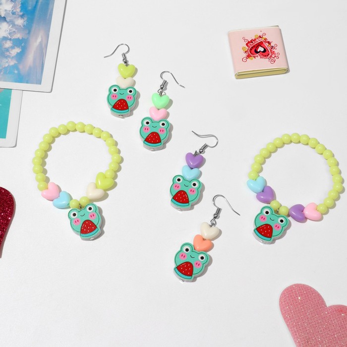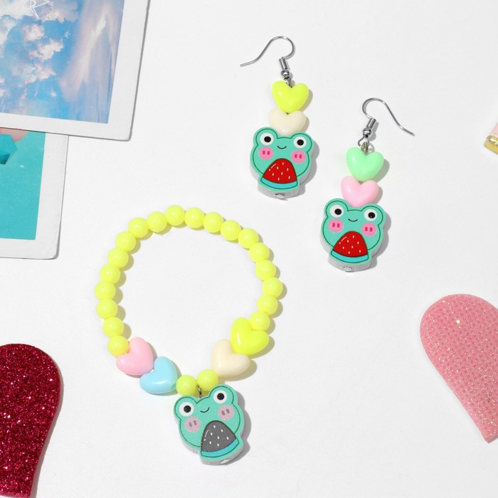 Набор детский «Выбражулька» 2 предмета: серьги, браслет d=5 см. лягушки, МИКС