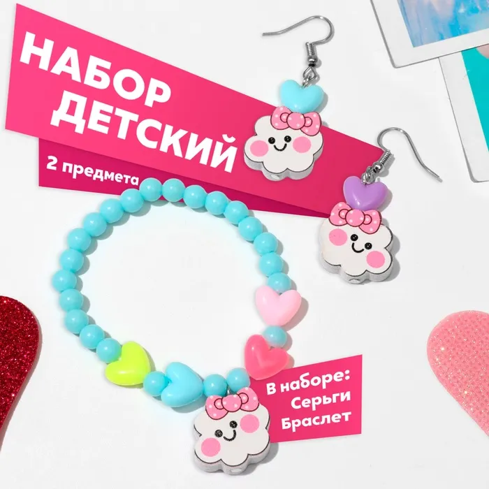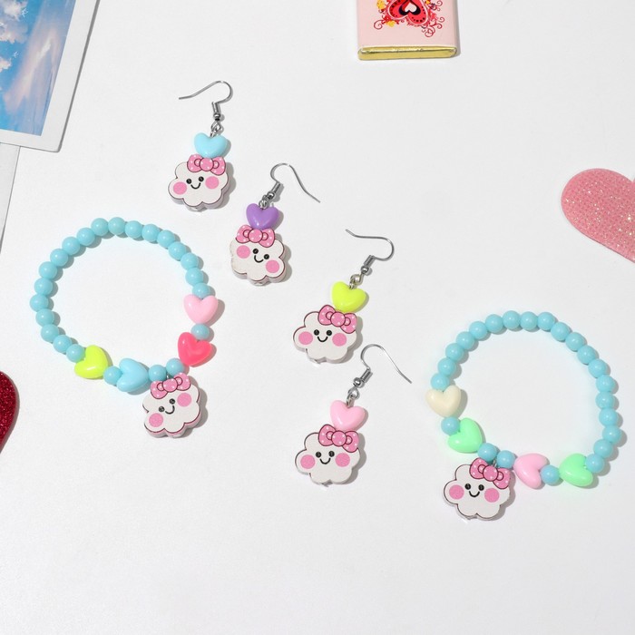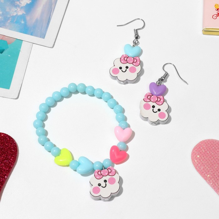 Набор детский «Выбражулька» 2 предмета: серьги, браслет d=5 см., облачка, МИКС — Характеристики