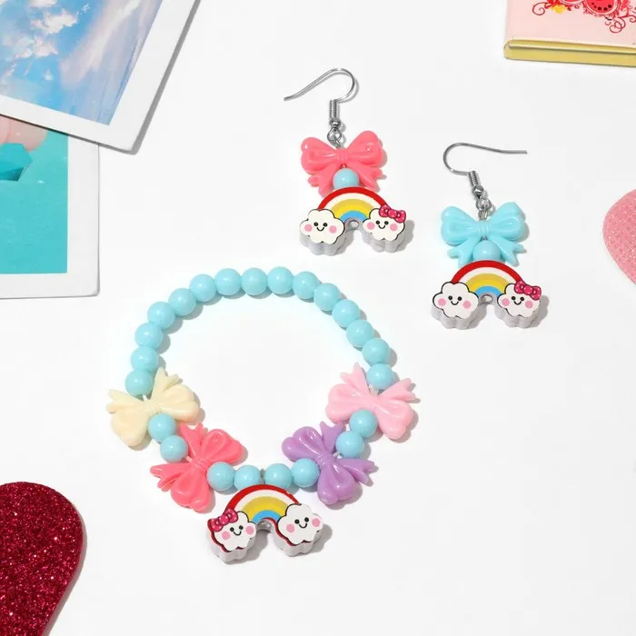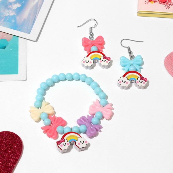 Набор детский «Выбражулька» 2 предмета: серьги, браслет d=5 см. радуга, МИКС