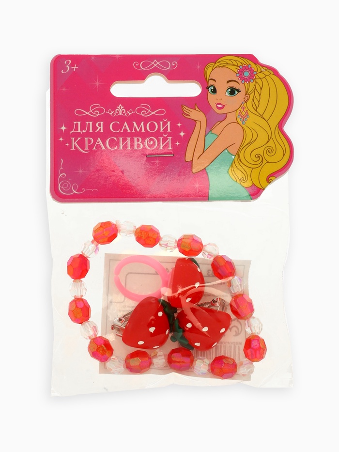 Этот набор детских украшений — идеальный подарок для маленькой модницы! В набор входят различные предметы согласно комплектации и наименованию, может содержать: бусики, кольцо, браслет, клипсы и аксессуары для волос. Яркий дизайн каждого предмета привлечет внимание и добавит индивидуальности любому наряду.