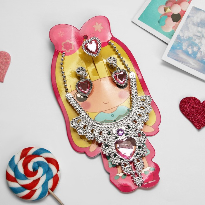 Набор детский «Выбражулька» 3 предмета: клипсы, колье, кольцо, сердце, розовый